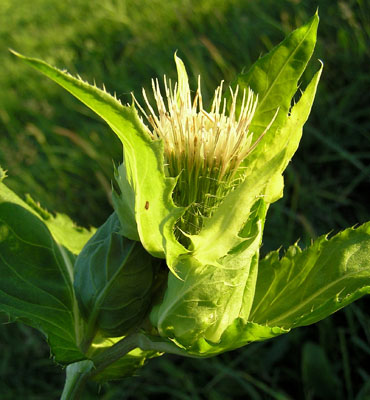 Die Kohl-Kratzdistel gehört zur Familie der Korbblütler (Asteraceae).
