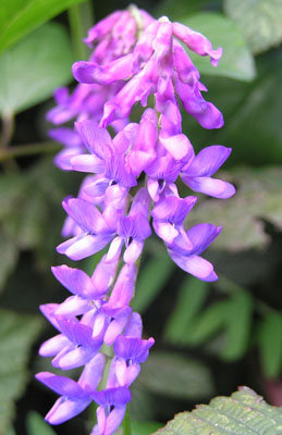 Bis zu 40 Schmetterlingsblüten in einer Traube angeordnet, findet man bei der Vogel-Wicke. Sie ist auf Wiesen, an Gebüschen und Waldrändern verbreitet. Die Vogel-Wicke war früher ein gefürchtetes Acker-Unkraut. Den Namen gaben ihr die Vögel, die gerne die Samen verzehren.