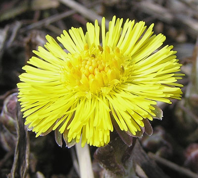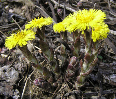 Der Huflattich besitzt bis zu 300 Zungen- und 40 Röhrenblüten, aber die Körbchen öffnen sich nur bei schönem Wetter. Der Stängel ist hohl und mit Schuppen besetzt. Der Huflattich wächst oft in großen Gruppen und ist häufig anzutreffen. Die Pflanze enthält leberschädigende Stoffe.